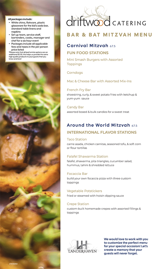 Driftwood Catering at Landerhaven offers the guest a wide variety of chef-crafted cuisine, floral, and bakery options. We cater to those who appreciate the kind of service that embraces every detail.