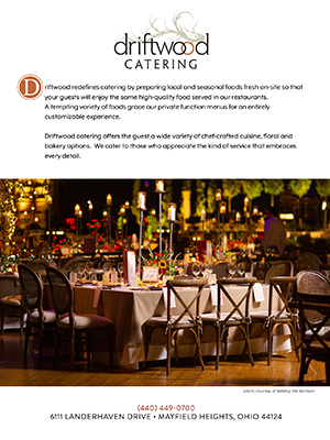 Driftwood redefines catering by preparing local and seasonal foods fresh on-site so that your guests will enjoy the same high-quality food served in our restaurants. A tempting variety of foods grace our private function menus for an entirely customizable experience. Driftwood catering offers the guest a wide variety of chef-crafted cuisine, floral and bakery options. We cater to those who appreciate the kind of service that embraces every detail.