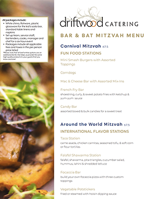 Driftwood redefines catering by preparing local and seasonal foods fresh on-site so that your guests will enjoy the same high-quality food served in our restaurants. A tempting variety of foods grace our private function menus for an entirely customizable experience. Driftwood catering offers the guest a wide variety of chef-crafted cuisine, floral and bakery options. We cater to those who appreciate the kind of service that embraces every detail.